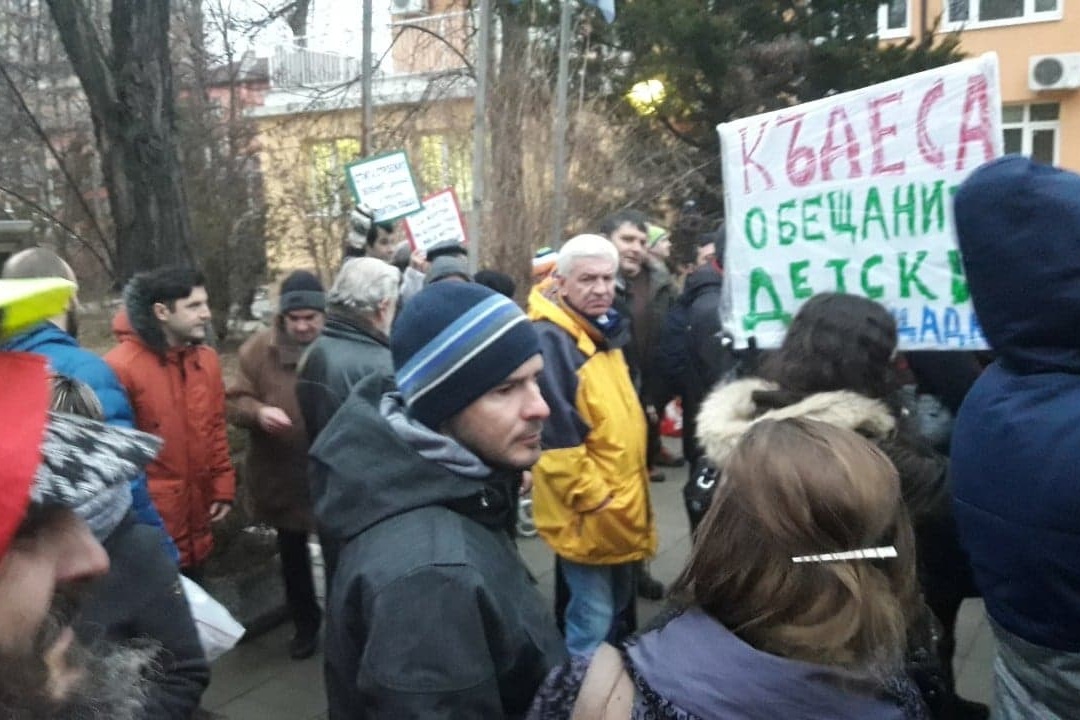 Десетки жители на столичния район "Изгрев" се събраха пред местната общината днес в 17 ч, за да протестират срещу планиран висок строеж до детска градина.