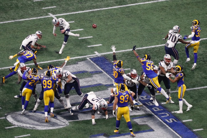 "Ню Инглънд Пейтриътс" за шести път ликува като шампион на Националната футболна лига на САЩ по американски футбол. На 53-ия финал Супербоул пред повече от 71 хиляди зрители на стадион "Мерцедес-Бенц" в Атланта "патриотите" сразиха "Лос Анджелис Рамс" с 13:3.