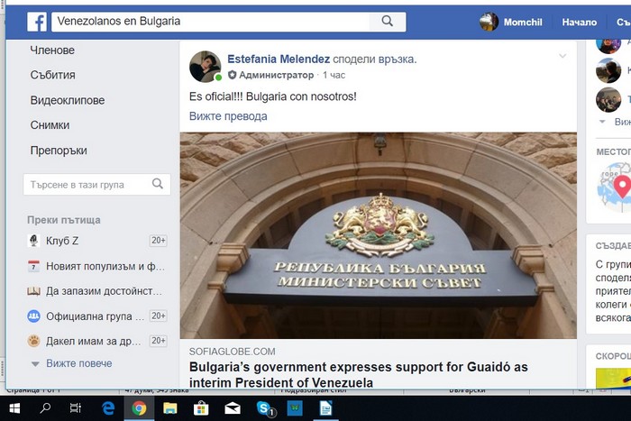 „Официално!!! България е с нас!“, написа модераторката Естефания Мелендес във фейсбук групата Venezolanos en Bulgaria („Венецуелци в България“).