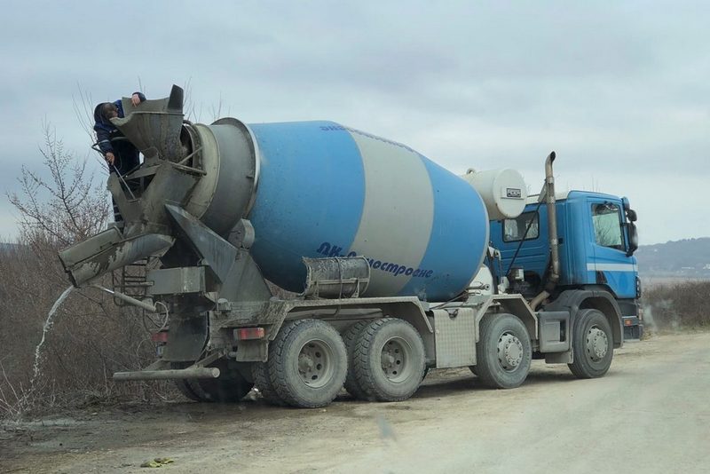 Над строежа се извисяват поне две бетонпомпи, а бетоновози непрекъснато пристигат и напускат строежа. На една от снимките, направени на място, се вижда, че рамото на бетонпомпата е над основите на уж спрените от строителство сгради, а до нея бетоновоз подава материал. От друга снимка пък се вижда как вече разтоварил бетоновоз изхвърля остатъчното количество материал и отмитата циментова вода в сервитута на общинския път в резервата.