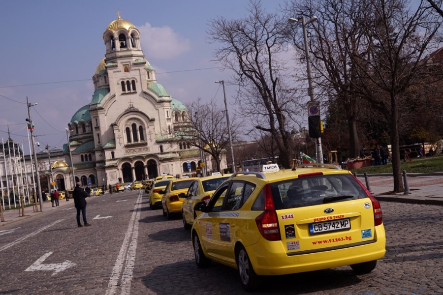 Таксиметровите шофьори в столицата излязоха днес на протест в центъра на София. Той е организиран от Националния таксиметров синдикат срещу нелоялната конкуренция на руската компания "Такси Максим".