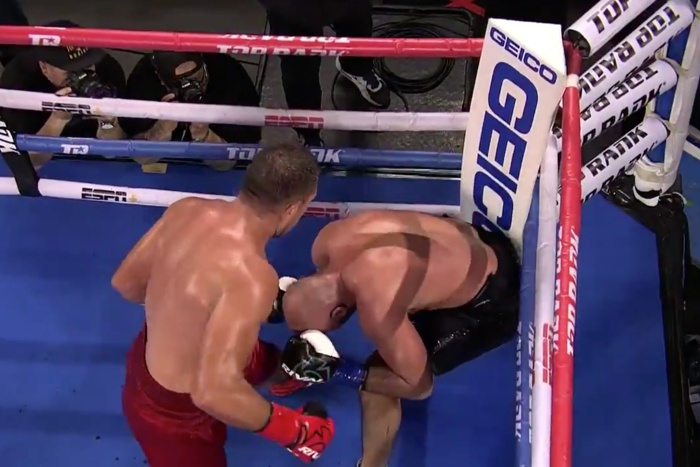 Преди това обаче Кобрата мина през тежки моменти, като в четвъртия рунд получи аркада и от главата му потече кръв.