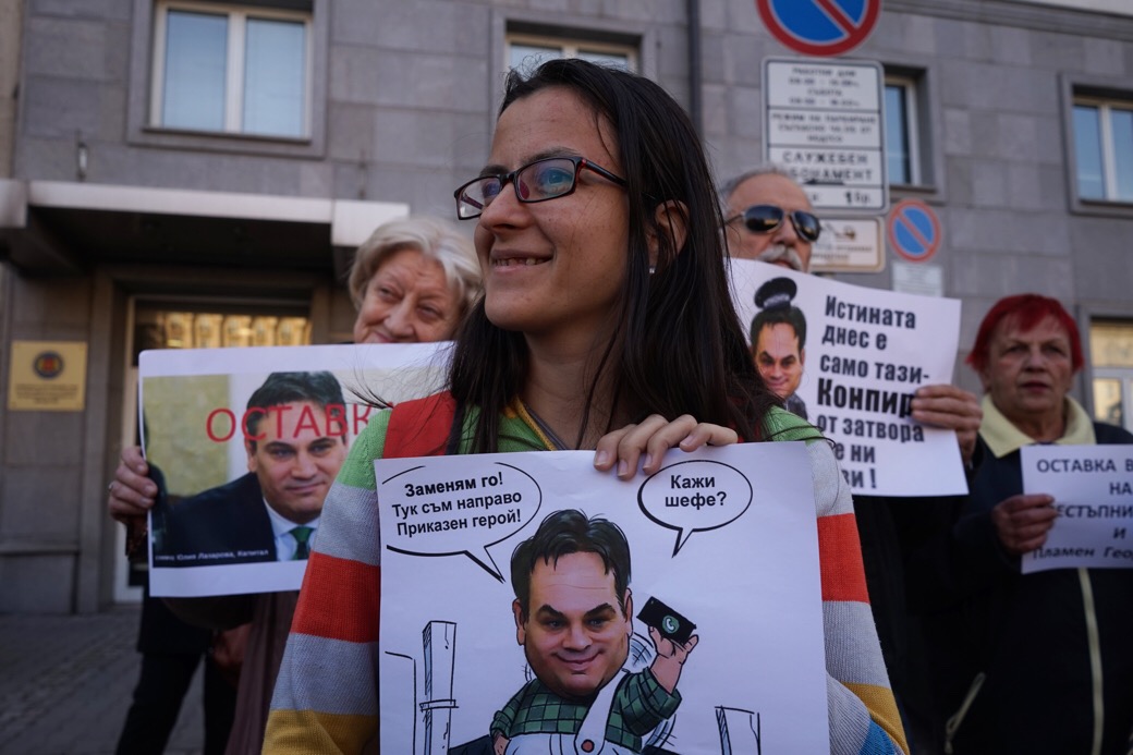 Привечер група граждани поиската и оставката на Пламен Георгиев от КПКОНПИ. Протестът не беше мащабен.