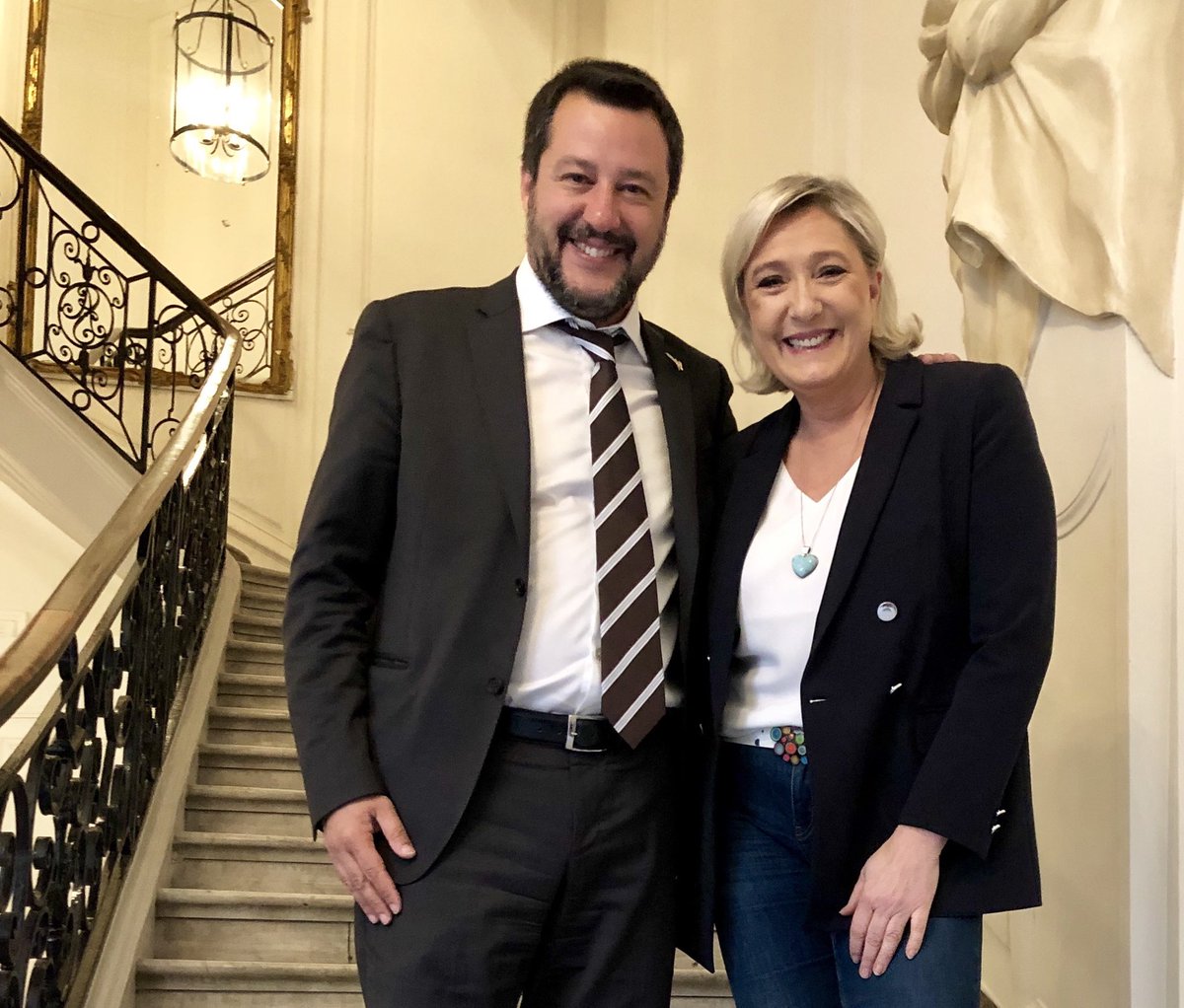 "В добра форма и готови за европейските избори на 26 май с Матео Салвини!", написа в "Туитър" Льо Пен.