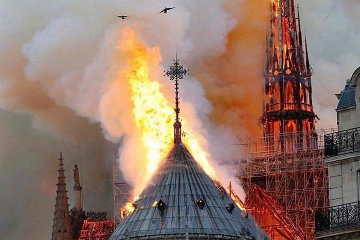 Според източник от парижката противопожарна служба пожарът е свързан вероятно с работите по обновление на готическата сграда от XII век, сцена на романа на Виктор Юго "Парижката Света Богородица" (1831 г.).