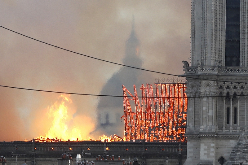 В първия ден от католическата Страстна седмица покривът и кулата на един от символите на Париж, катедралата Нотр Дам, рухнаха след бързо разразил се унищожителен пожар, предадоха световните агенции и хиляди очевидци в социалните мрежи.