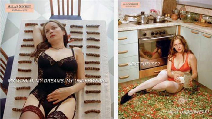 След като арогантността стана тъканта на техните работи, те го удариха на купон и подигравки. Един от любимите ми примери в тази посока е Алла Георгиева и нейната серия „Тайните на Алла”. Тук тя снима себе си в ролята на „типична” българска домакиня – седнала на земята в секси бельо, сред море от шопска салата или пък излегната (пак полугола) сред кебапчета.