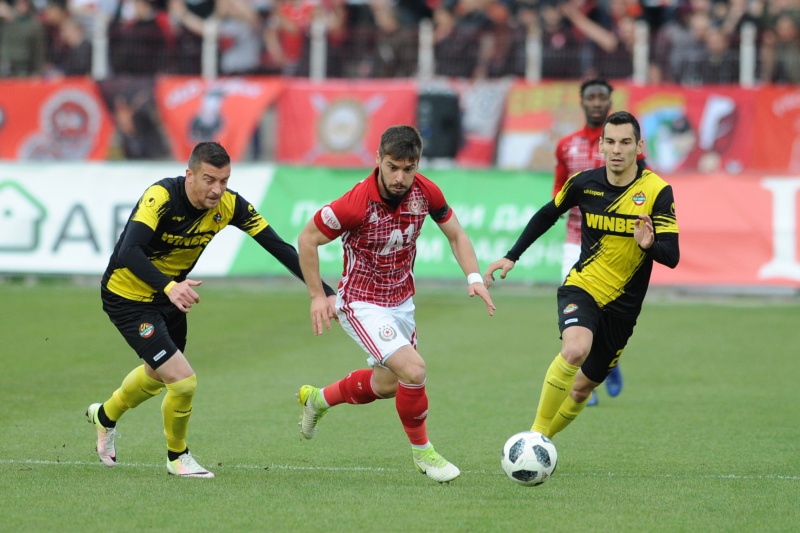Малко преди края Костадинов сътвори нов гаф - още по-голям. Той даде несъществуваща дузпа за "червените" при симулация на Рафаел Енрике в пеналта. Вутов го блъсна с тяло и този път видя директно червения картон. А от 11-те метра Али Соу вкара за 3:2 в 86-ата мин.
