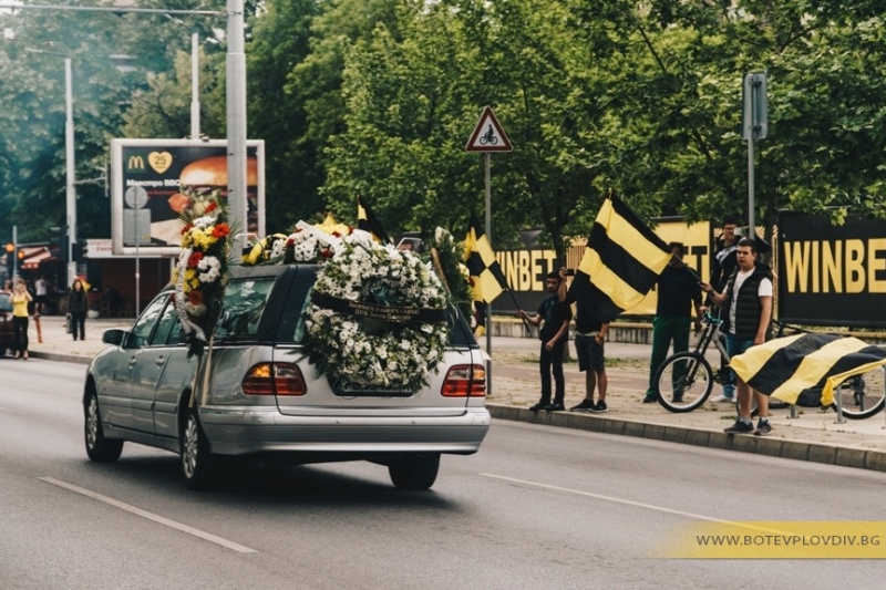 След това траурната процесия мина покрай стадион "Христо Ботев" напът за "Централни гробища" в Пловдив. Почти през целия път отстрани имаше фенове на "жълто-черните", които ръкопляскаха.