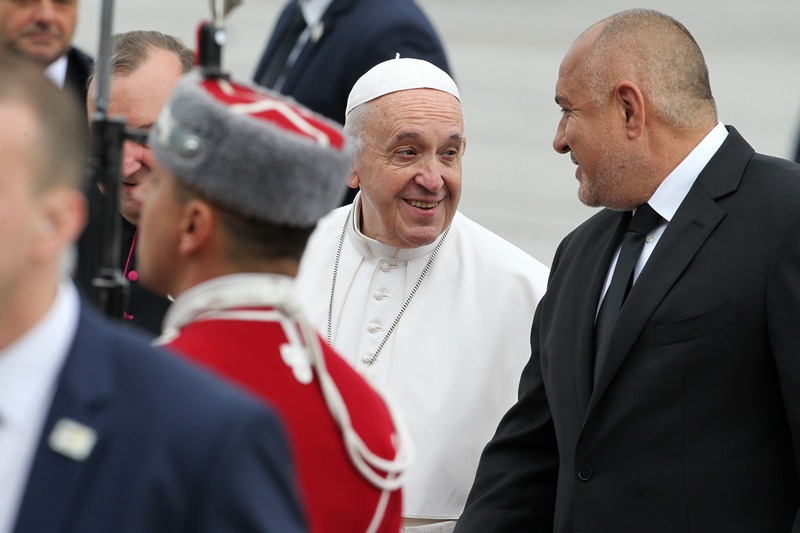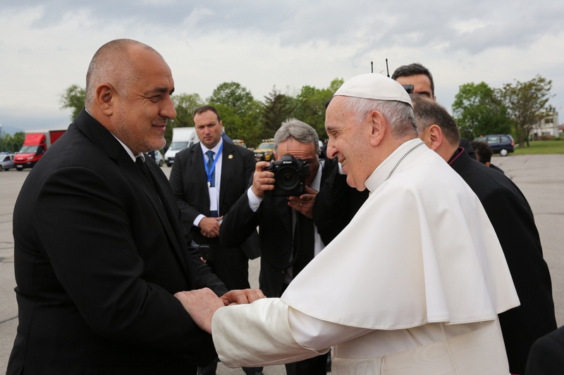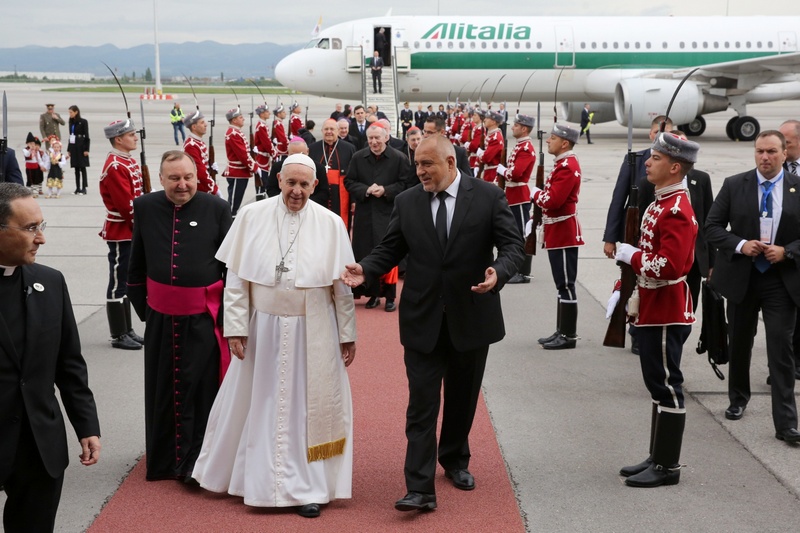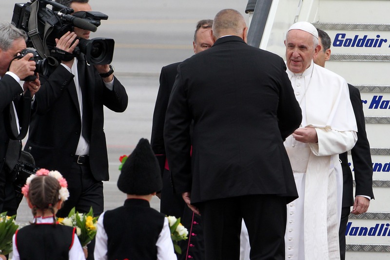 Папа Франциск, който днес и утре е на посещение в България, кацна на летището в София. Той бе посрещнат от премиера Бойко Борисов.
