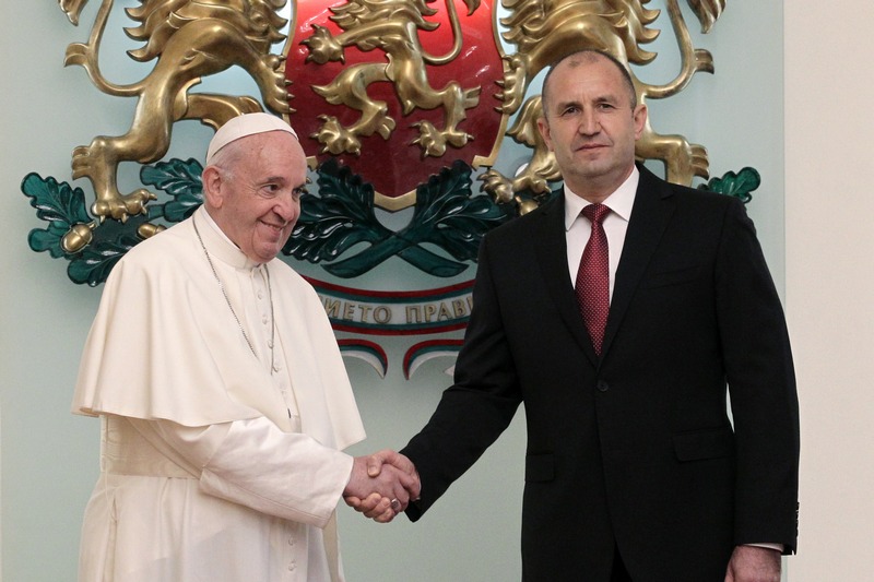 "Вашата държава винаги се е отличавала като мост между Изтока и Запада, способна да благоприятства среща между различни култури, които тук от векове живеят заедно. Интегрирана в ЕС, със солидни връзки с Русия и Турция. Бог да благослови България, да я запази мирна, да я направи просперираща и щастлива", каза папа Франциск.