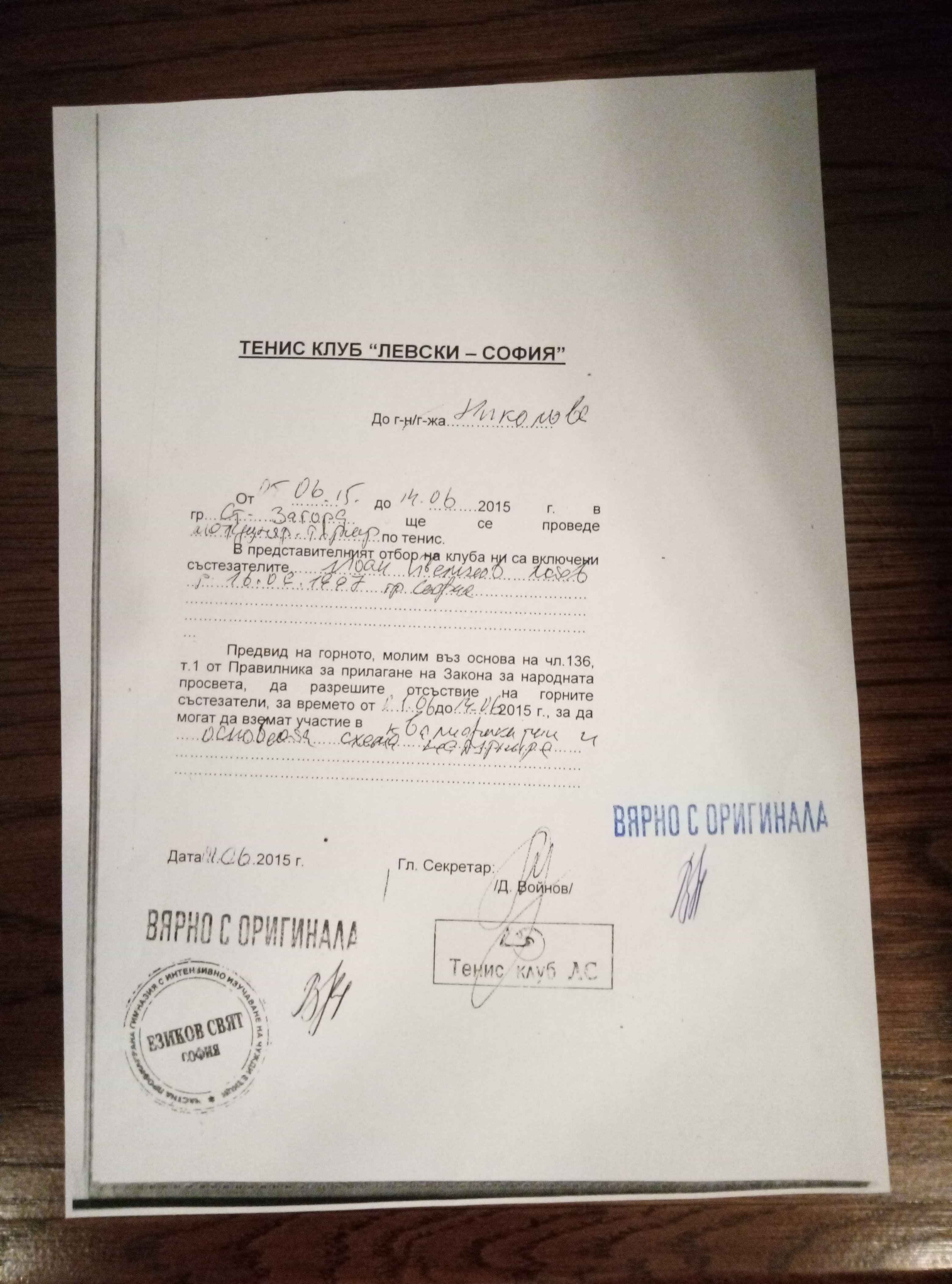 Майката й предоставила тази бележка на 5-и юни.