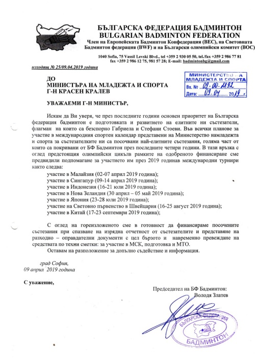 Ръководството на Българската федерация по бадминтон (БФБ) даде пресконференция в отговор на писмото във Фейсбук, публикувано вчера от европейските шампионки на двойки Габриела и Стефани Стоеви. Те заявиха, че повече няма да играят за България, тъй като са обидени от отношението към тях.