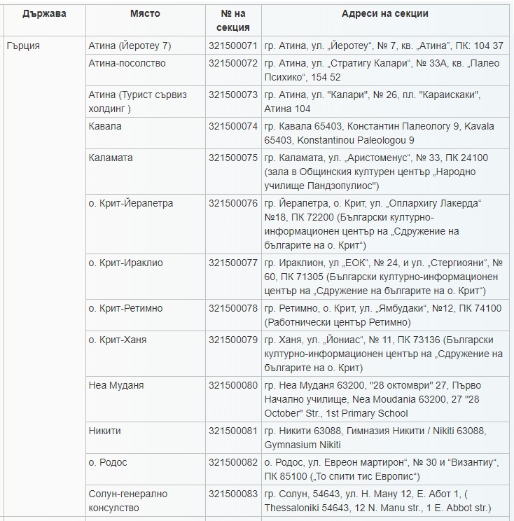Вижте адресите на всички секции в Гърция и по държави тук: