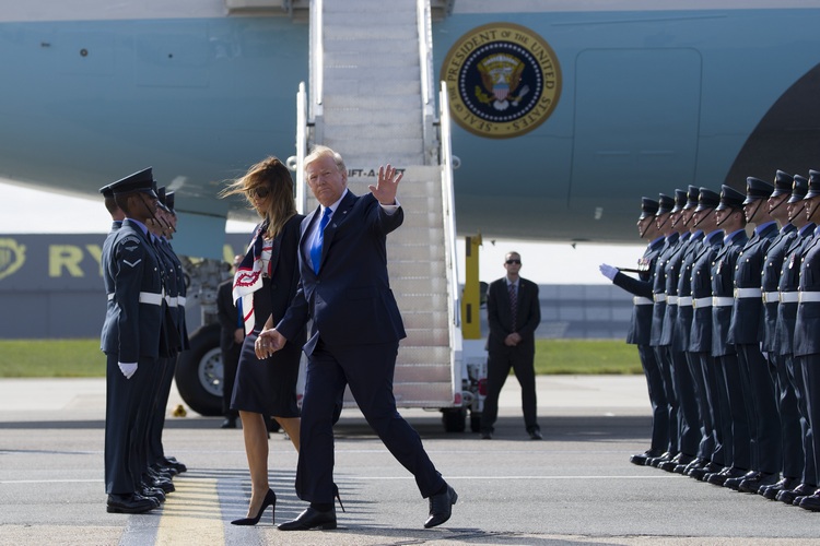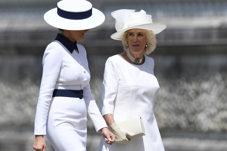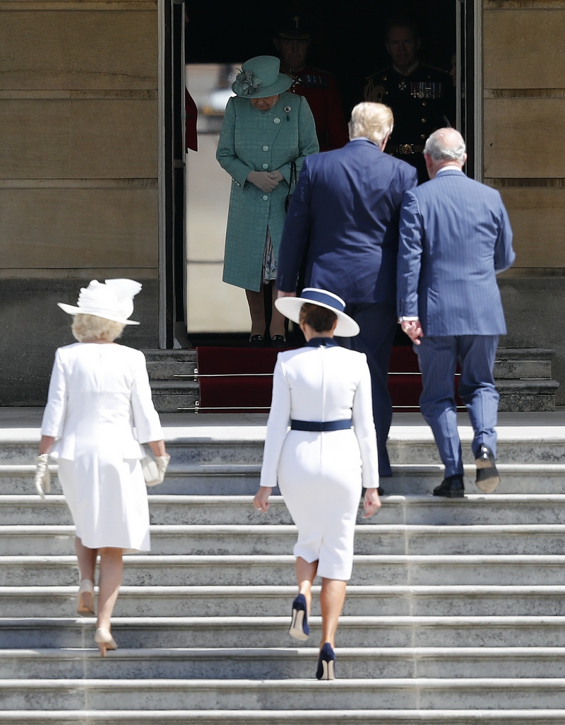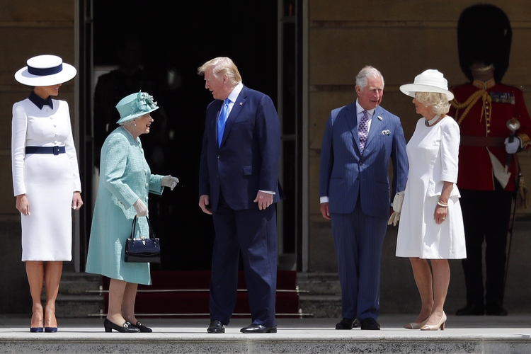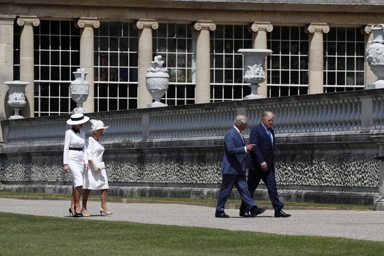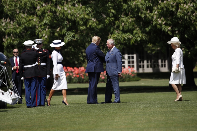 Американският президент Доналд Тръмп пристигна заедно със съпругата си Мелания в понеделник на второто си посещение във Великобритания. Отново сред протести и недоволство. След като самолетът на щатския държавен глава кацна в Лондон първата двойка на САЩ се отправи с хеликоптер към Бъкингамския дворец. Пръв там с Тръмп се ръкува престолонаследникът принц Чарлз, а съпругата му Камила и Мелания бяха избрали бялото за своите тоалети.