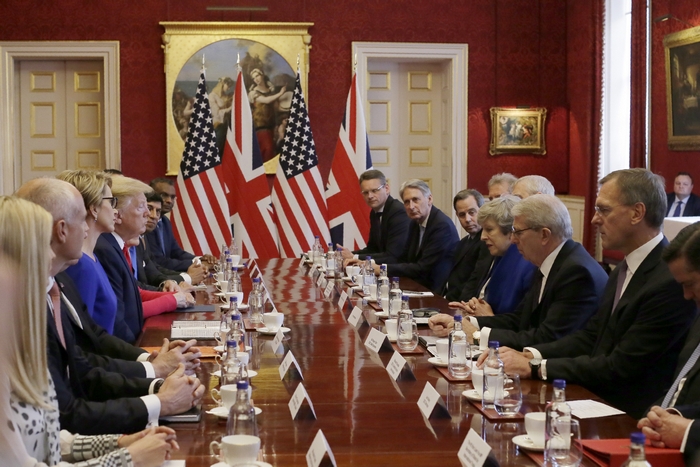 Американският президент и Мей се срещнаха с ръководителите на американски и британски компании през втория ден от посещението на Тръмп във Великобритания.