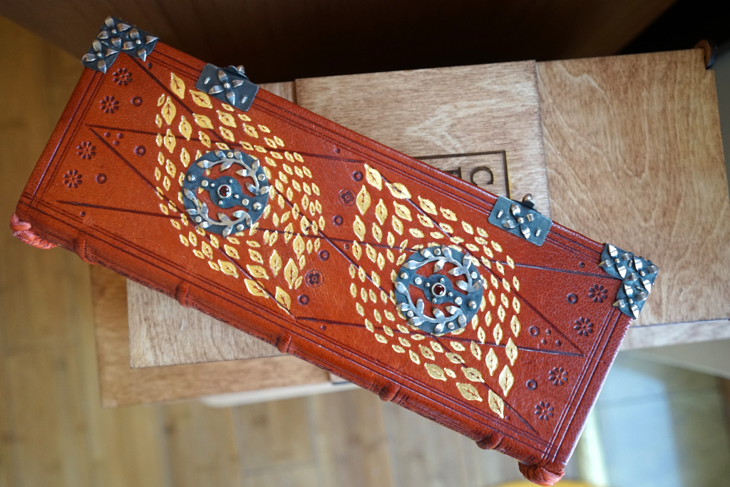 Тези украси на книги, които прилагам, лежат на базата на стари ръкописи, които съм гледал в нашите библиотеки и хранилищата. Те реално са елементарни и аз исках по някакъв начин да ги усложня. Това ми е единствената връзка с миналото. Но като структура на книжното тяло работя с много заемки от западните традиции, които са много напреднали. И въпреки че са структури от XVI-XVII век, те са по-напред от някои от книгите, които имаме в нашите хранилища от XVI, XVII и XVIII век“, казва моят събеседник.