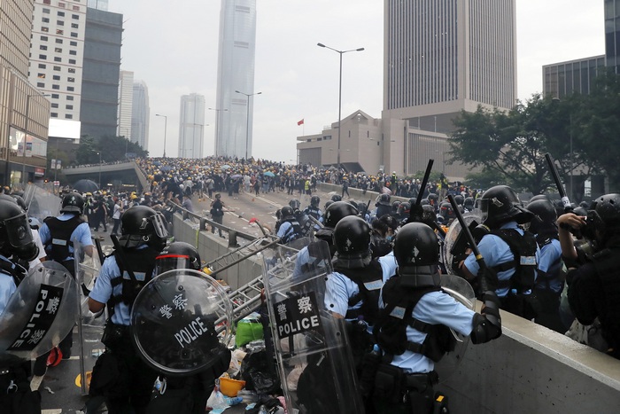 Демонстрантите, повечето - млади хора, облечени в черно, бяха издигнали барикади и се готвеха да окупират района със седящ протест както през 2014 година. Сцена на събитията е финансовото сърце на Хонгконг, чиито бляскави небостъргачи предоставят офиси на най-големите международни корпорации и банки.