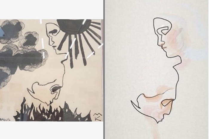 Двете рисунки са идентични, като „френската” е в негатив, а „нашата“ в позитив. Българската работа се казва „Любов”, а френската Close Noir („Клоуз Ноар“) – портрет в една линия на Глен Клоуз, изпълнен в черно. Творбата на френския художник бе разпозната в галерия „Структура“ от осмокласник от Художествената гимназия, който я е виждал в интернет и я е прерисувал, за да тренира рисунъка си.