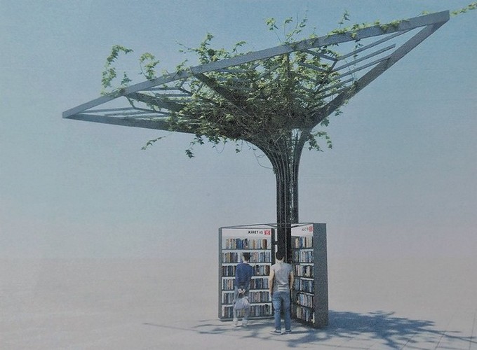 Висящите щандове ще бъдат 15 и във формата на разтворена книга, в центъра на която ще стои търговецът. Перголите няма да бъдат покривани с прозрачни цветни плоскости, както предвиждаше първоначалният проект на А.Д.А. – били са монтирани на един от навесите и като завялал дъжд, се оказало, че се пълнят с вода. Цветният плексиглас е бил премахнат и е избран по-практичен вариант – да бъдат озеленени. Докато растителността се сгъсти дотолкова, че да прави сянка през лятото, книжарите и стоката им явно ще се пекат на слънце, а зимата… може би ще си почиват, защото подслон при валежи няма да имат. Или пък ще си изберат друга професия.