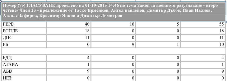 Гласуването обаче показва следния резултат - идеята на левицата е приета с 86 гласа "за". 40 от тях - тоест повече от половината - са от ГЕРБ . Ето и извадката от вота по групи по конкретния текст: