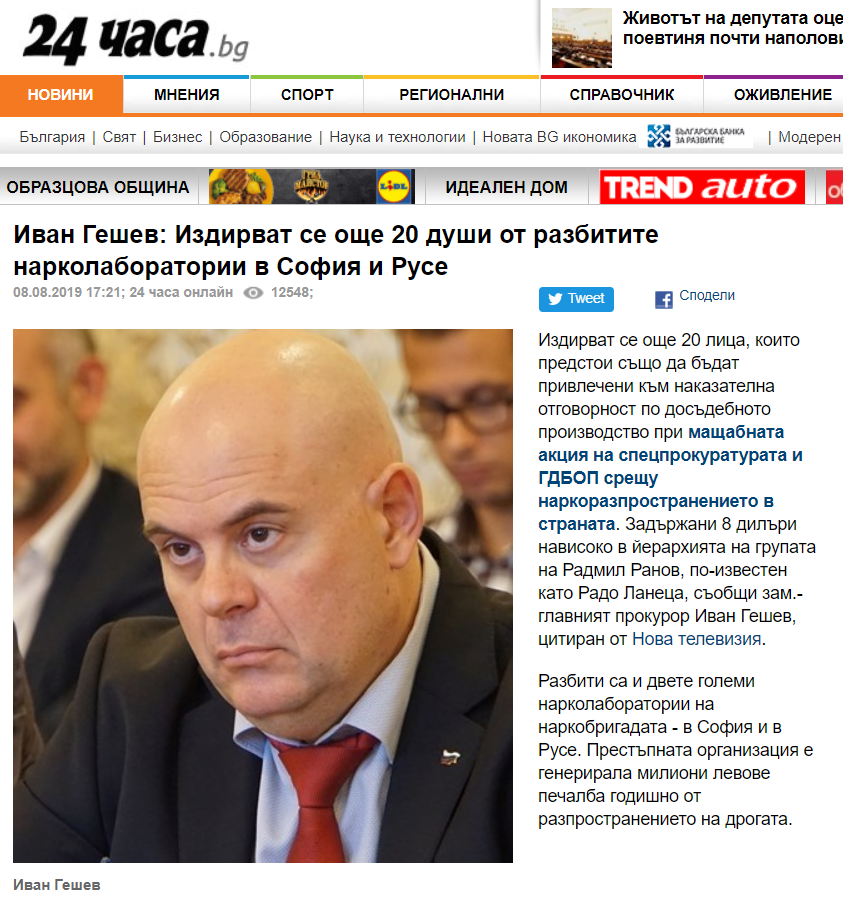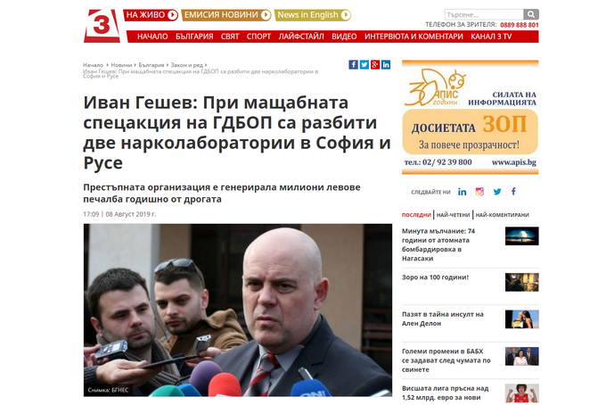Макар да не е нито административен ръководител на Спецпрокуратурата, която по закон разследва организирани банди, нито на сектор "Наркотици" на ГДБОП, Иван Гешев грее в новините и на Канал 3, която аха да е на Пеевски, но не можа да стане негова. Макар че никак не й личи...