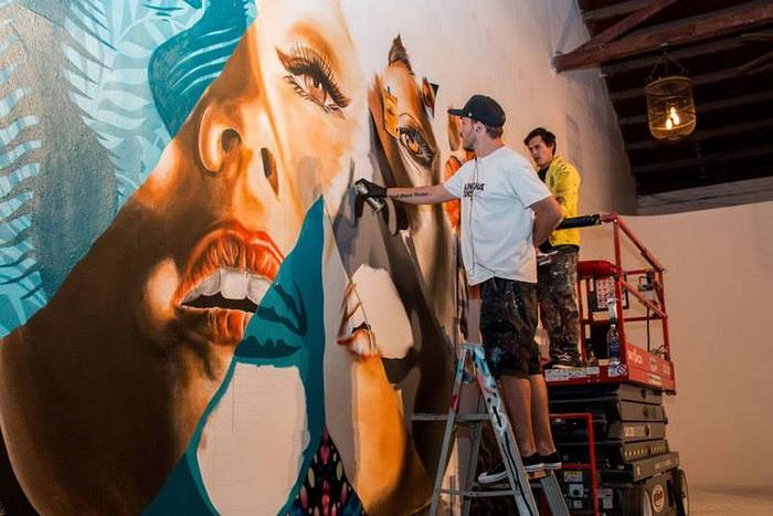 Артистът от Детройт, Ню Йорк и Лос Анжелис, чието изкуство е намерило място с постоянна колекция в МоМА - Музеят на модерното изкуство в Ню Йорк, пристигна у нас през декември 2017 г. като рекламно лице на световноизвестна марка уиски. В рамките на кампанията Итън трябваше да подари на София стенопис на упоменатата вече сграда в центъра.