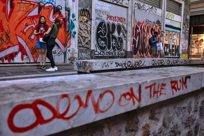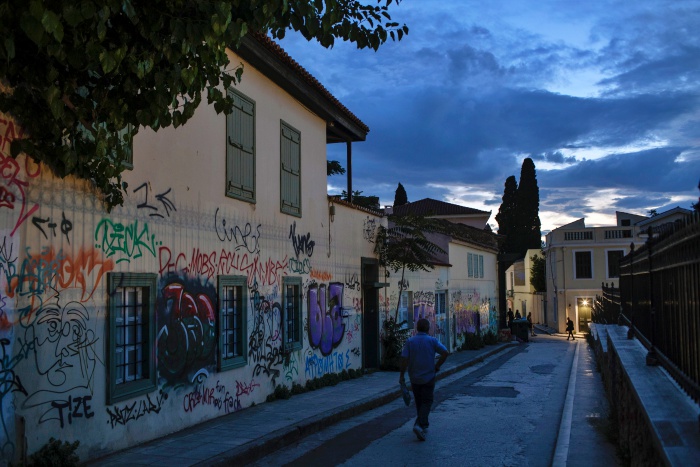 В столицата на Гърция през последните години почти не са останали фасада, гараж, стълбище, подлез, стена на на магазин, които да са в оригиналния си цвят. "Пощадени" от графити са само сгради, около които контролът е много засилен - правителствени здания, банки...