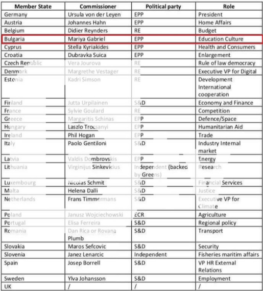 Според бТВ списъкът с ресорите по държави вече е готов. От него става ясно още, че за български еврокомисар ще бъде номинирана Мария Габриел.