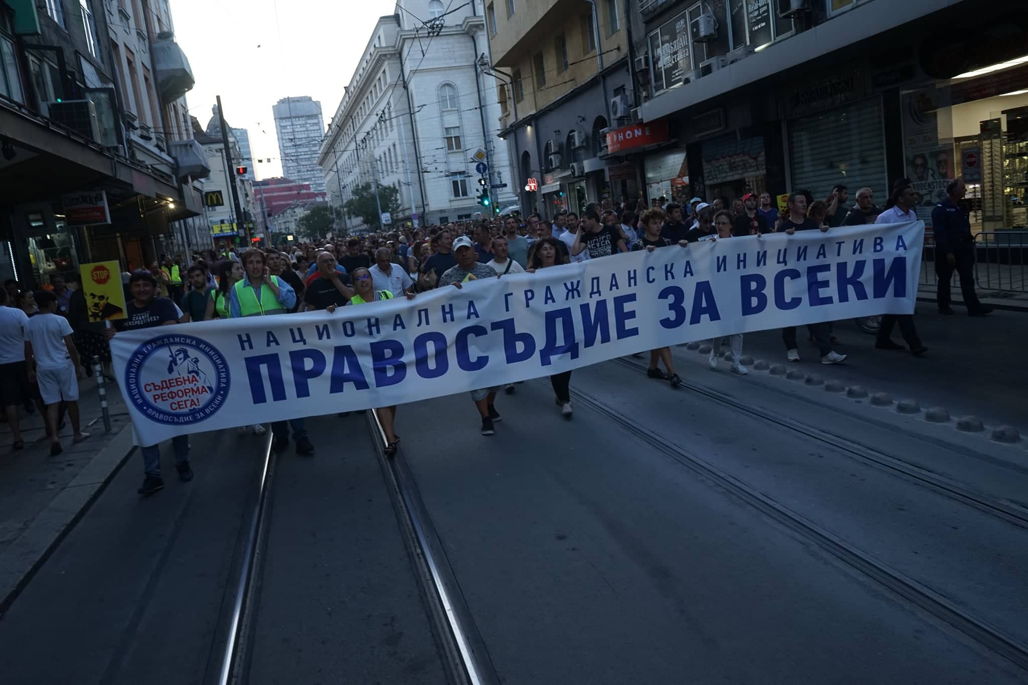 В символична жива верига към 21 ч пред сградата на Народното събрание преля протестът за законност, организиран от "Правосъдие за всеки".