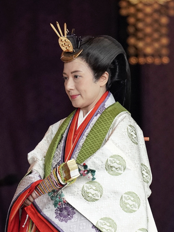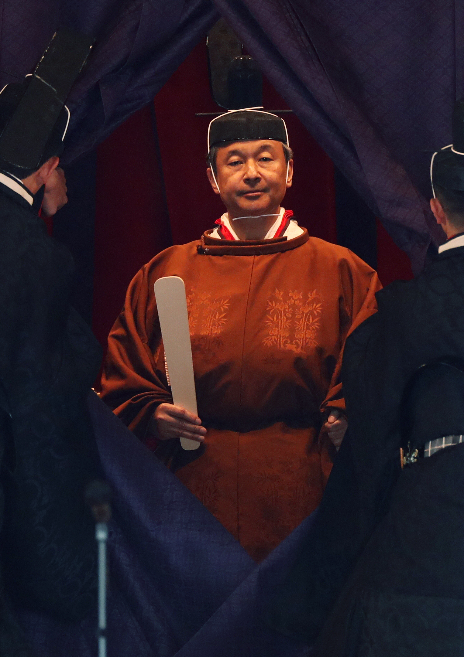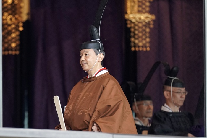 "Възкачвам се на престола в съответствие с конституцията и закона за императорския дом. Провеждайки церемонията по възкачването на престола, обявяваме това на страната и на целия свят", каза монархът след качването си на високия 6,5 метра трон на продължилата 30 минути церемония.