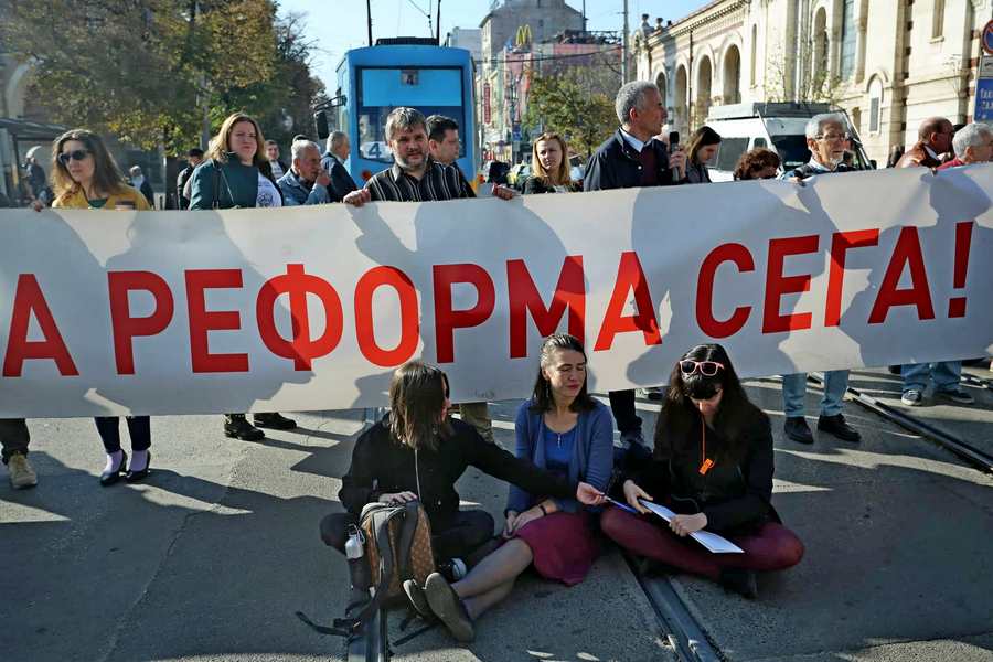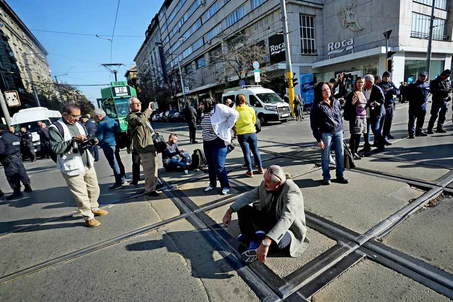 По-късно полицията включи сирените и се опита да мине през хората с автомобилите. Протестиращите обаче отново ги блокираха и ги принудиха да отстъпят.