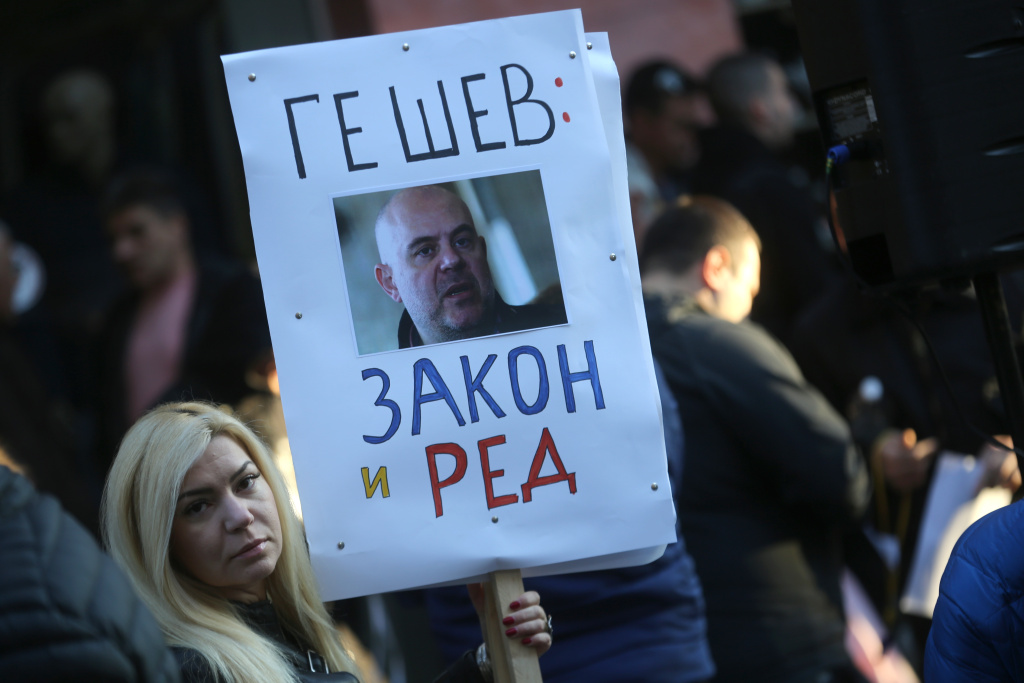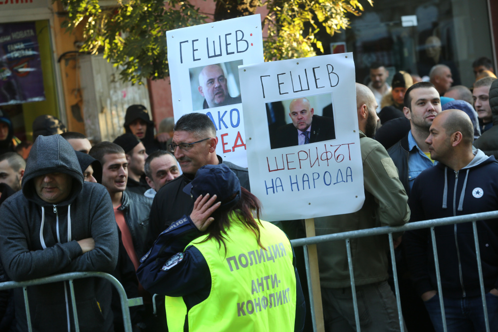 Така протестиращите срещу избора на Гешев въобще не бяха допуснати в близост до сградата на ВСС, те бяха затворени до ъгъла на "Цар Борис" и "Цар Симеон". За разлика от подкрепящите Гешев, които стоят точно пред ВСС с правилните плакати: "Гешев - достойният главен прокурор", "Гешев - шерифът на народа" и др. Там от "Пик" бяха издигнали трибуна и се бяха събрали около 200 души. Първа от трибуната се изказа Звездомира Мастагаркова. По-късно ликуващите привърженици на Гешев друснаха и хоро под прозорците на ВСС.