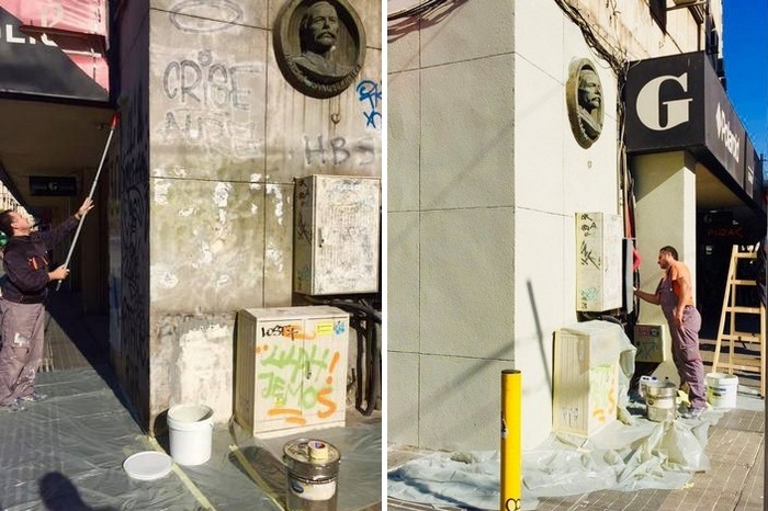 Фасадата с орелефа на големия революционер и възрожденец Георги Раковски на едноименната столична улица бе почистена до блясък от многобройните драсканици и графити, резултат от не една и две хулигански прояви в района.