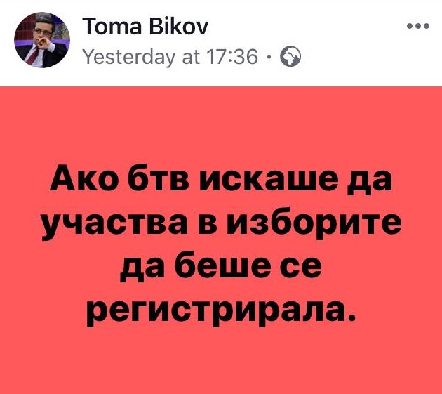 Независимо от него, в този дух се изказа и депутатът от партията и член на Комисията по култура и медии в парламента Тома Биков.