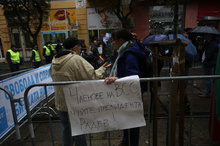 За разлика отпреди две седмици недоволните от избора на Гешев за главен прокурор се намираха близо до сградата на ВСС. Протестът мина на фона на българска и западна рок музика.