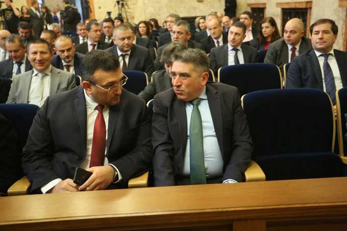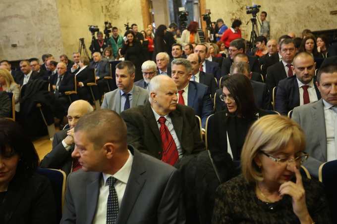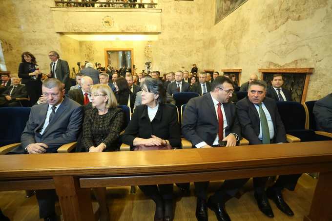 На първия ред: представителна извадка от Конституционния съд (Красимир Влахов, Таня Райковска и Мариана Карагьозова-Финкова) и от изпълнителната власт.