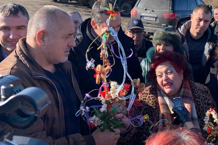 На обекта Борисов бе посрещнат с гайда и жени в носии, със сурвачки, дрян и погача.
