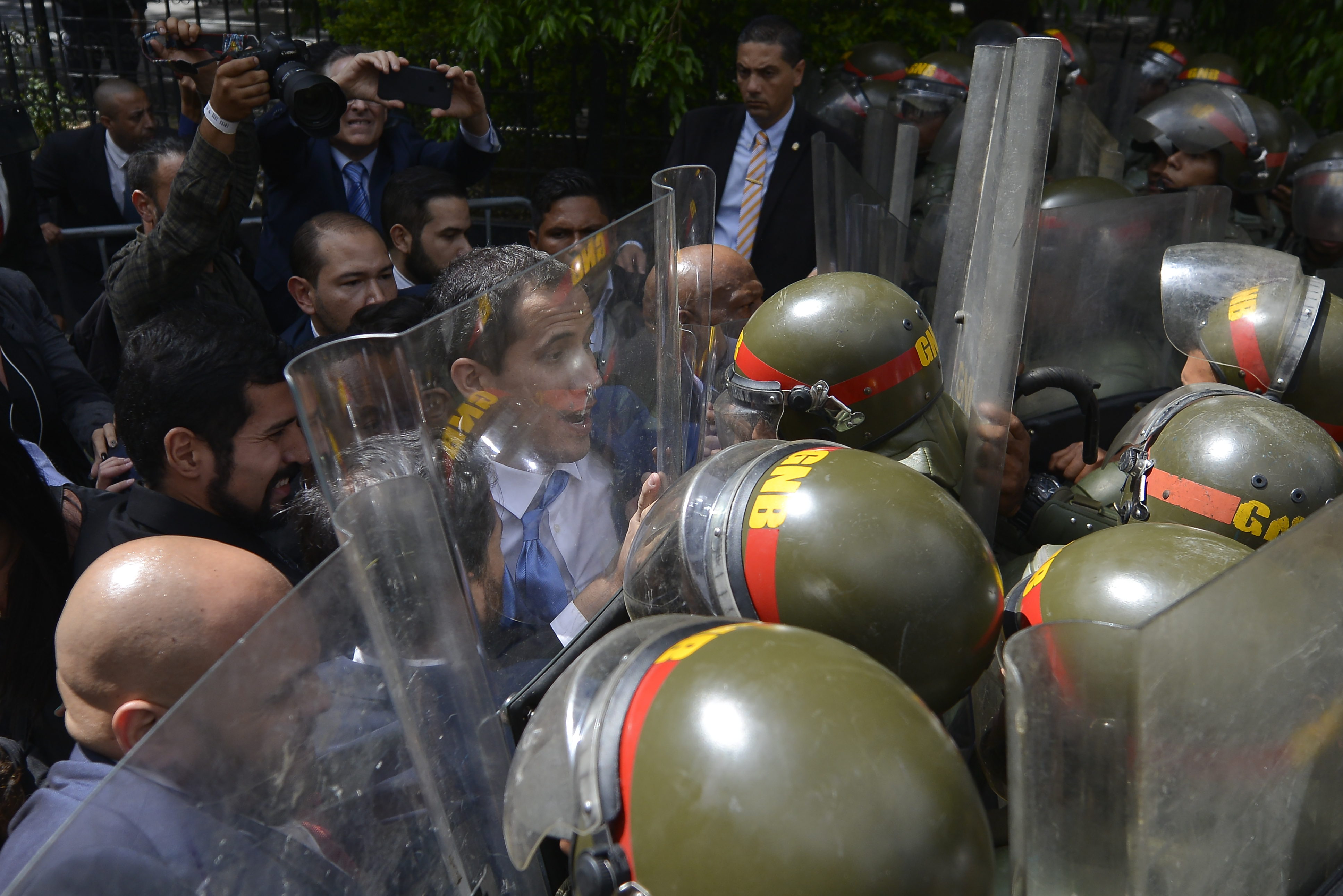 В социалните мрежи бе публикувано видео, в което Гуайдо заедно с малка група депутати се опитва да прескочи оградата на Конгреса, но е задържан от войници с полицейски щитове, застанали в двора на зданието.