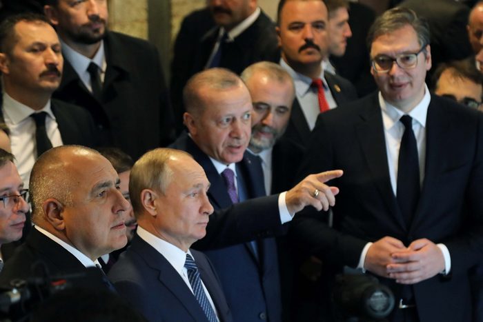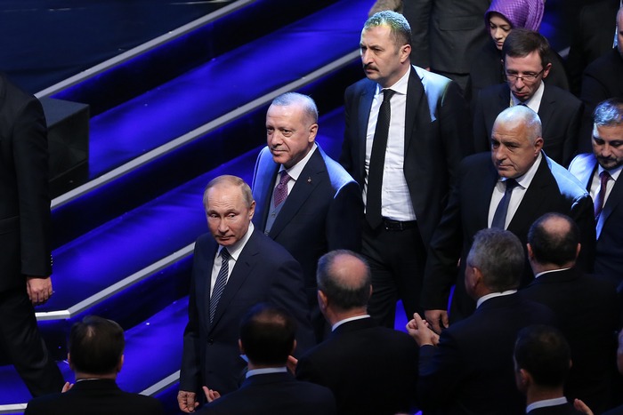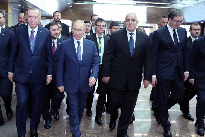 Веднага след Путин приветствено слово отправи и турският му колега Реджеп Таийп Ердоган. За да поздрави "искрено и от все сърце" правителствените ръководители на Русия, Сърбия и България - Путин, Александър Вучич и Бойко Борисов. След което обяви: