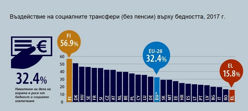 Казано по-простичко - ако в Европейския съюз, след като държавите обложат с данъци и след това разпределят средствата през бюджета, бедността и неравенството значително се намаляват, то в България това почти не се случва. Тоест, тези системи не работят и не изпълняват една от основните си функции.