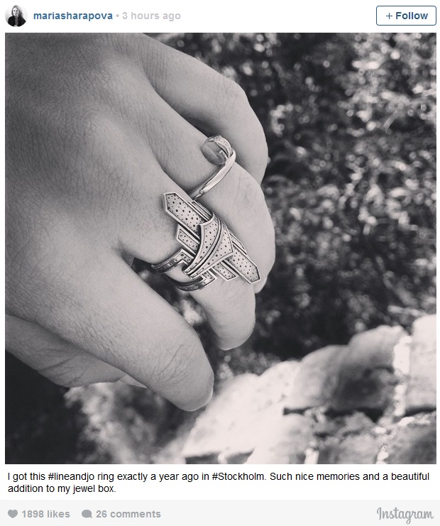 "Получих този пръстен точно преди една година в Стокхолм. Толкова хубави спомени и прекрасно попълнение за кутията ми с бижута", гласеше текстът към снимката.