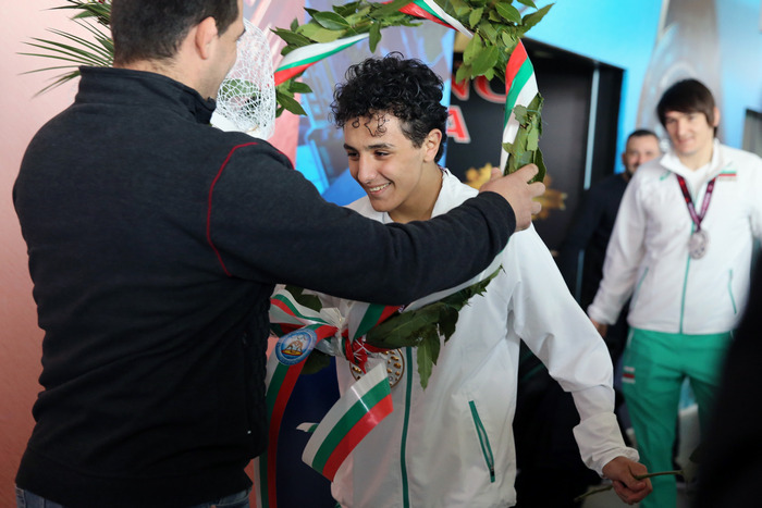 Едмонд Назарян получи уникално посрещане на българска земя, след като във вторник стана европейски шампион по борба в класическия стил на първенството в Рим. 18-годишният син на Армен Назарян се прибра в София заедно с националния отбор.