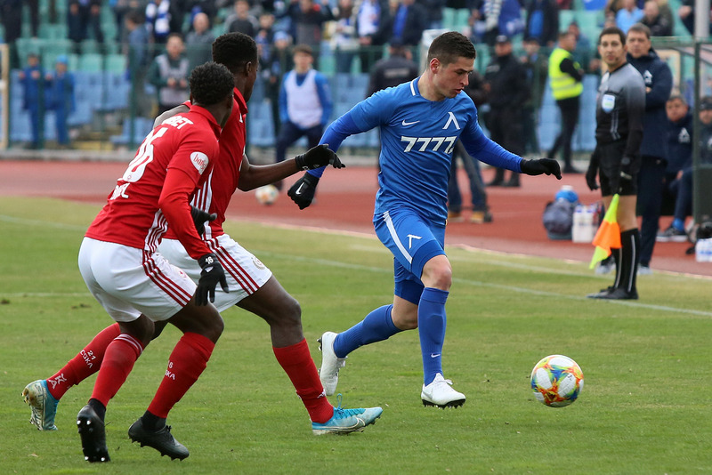 "Червените" създадоха възможност чрез Евандро. В 32-ата минута топката срещна ръката на Живко Миланов при центриране на Мазику, а Кабаков прецени, че няма основание да отсъди дузпа.