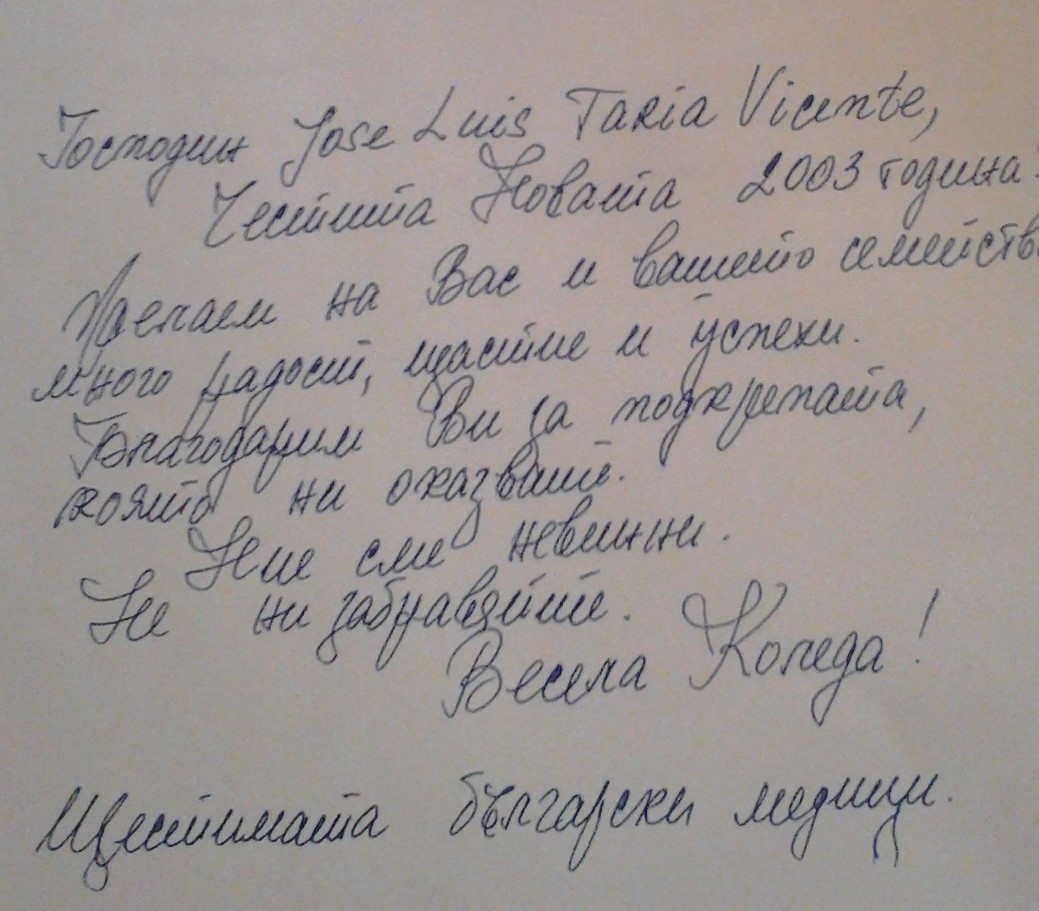 Хосе Луис Тапиа изненада медиците, като им показа копие от тяхно писмо до него, пратено от затвора. Те му честитят Коледа и новата 2003 г. Българите дори бяха забравили, че са пращали такова нещо