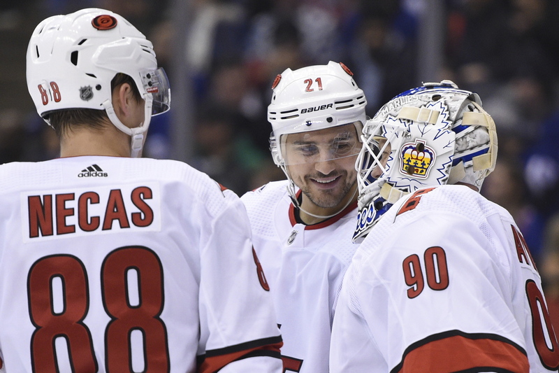 Играчи на "Каролина" се приближават да го окуражат. Не е имал време дори да се запознае с тях. В третата третина обаче шофьорът общ работник не пуска нов гол. Отразява осем шута, а съотборниците му вкарват още две шайби за 6:3.