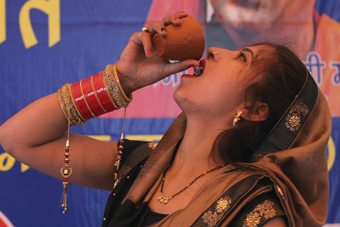 Десетки вярващи хиндуисти пият урина от крава по време на празник в Ню Делхи, съобщана Франс прес.