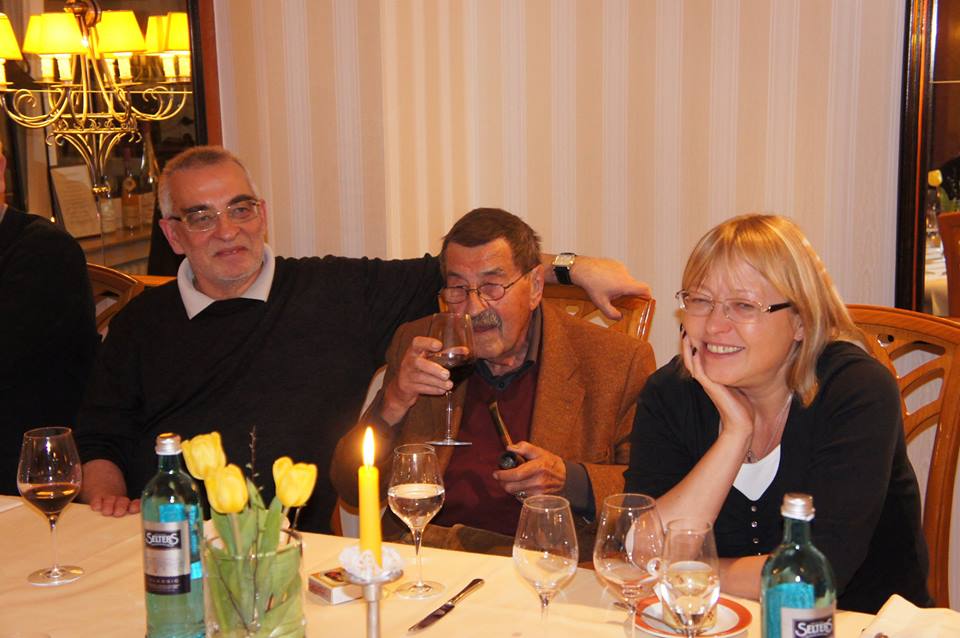 – В Щрален Грас е идвал по моя покана два пъти, но всъщност се познаваме от по-рано. Той беше успял да издейства от издателството, с което работи в момента (отначало „Лухтерханд“, после „Щайдл“), при всяка нова негова книга да кани преводачите ѝ в Любек (Белендорф, където живееше, е съвсем наблизо), за да обсъждат в продължение на седмица заедно с автора творбата му от начало до край. Така се създаде т. нар. „бляскав кръг“ от наистина именити преводачи, към който имах честта да се числя и аз. Постепенно се сприятелихме, посещавал съм го и частно, той ме гощаваше с прословутата си пача, а аз му носех бутилка „Сунгурларска гроздова“, която за ужас на жена му Уте изпивахме до дъно. И си говорехме – за изкуство, за кулинария, че и за жени…