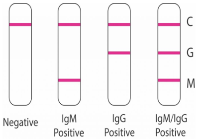 Антителата от този тип реагират най-бързо и най-рано на инфекцията и могат да бъдат идентифицирани 5-6 дни след появата на първите симптоми. Ако в кръвта на тествания има IgM срещу коронавируса, той трябва незабавно да бъде поставен под карантина, защото се намира в острата фаза на заболяването и може да е заразен за околните. Добре е да бъде тестван повторно след 2-3 седмици за дефиниране на динамиката на заболяването и търсене на IgG, които ще покажат, че пациентът оздравява. Тогава във втората проба не трябва да има IgM срещу COVID-19.