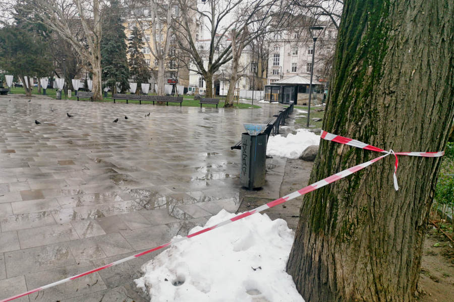 Множество от по-малките паркове в столицата, като този пред Народния театър "Иван Вазов", са оградени, установи репортер на Клуб Z. Така СДВР може да спира хората от разходки в паркове и градини - нещо, което бе забранено при второто допълнение на мерките срещу епидемията от COVID-19.